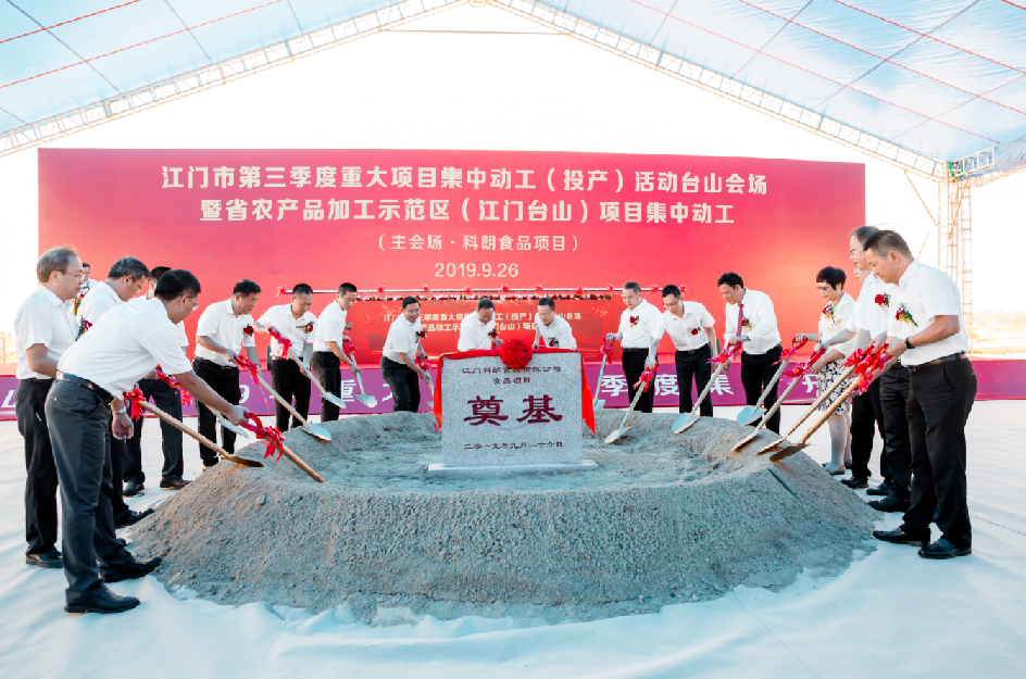 9月26日,台山市第三季度重大项目集中动工(投产)活动暨省农产品加工示范区(江门台山)集中开工仪式隆重举行。科朗食品项目作为本次开工仪式的主会场,吸引了江门市委副书记、市长刘毅,省农业农村厅副厅长冯彤,江门市副市长林飞鸣,台山市李惠文、谢少谋、黄伟红、李健慈等领导到场出席。